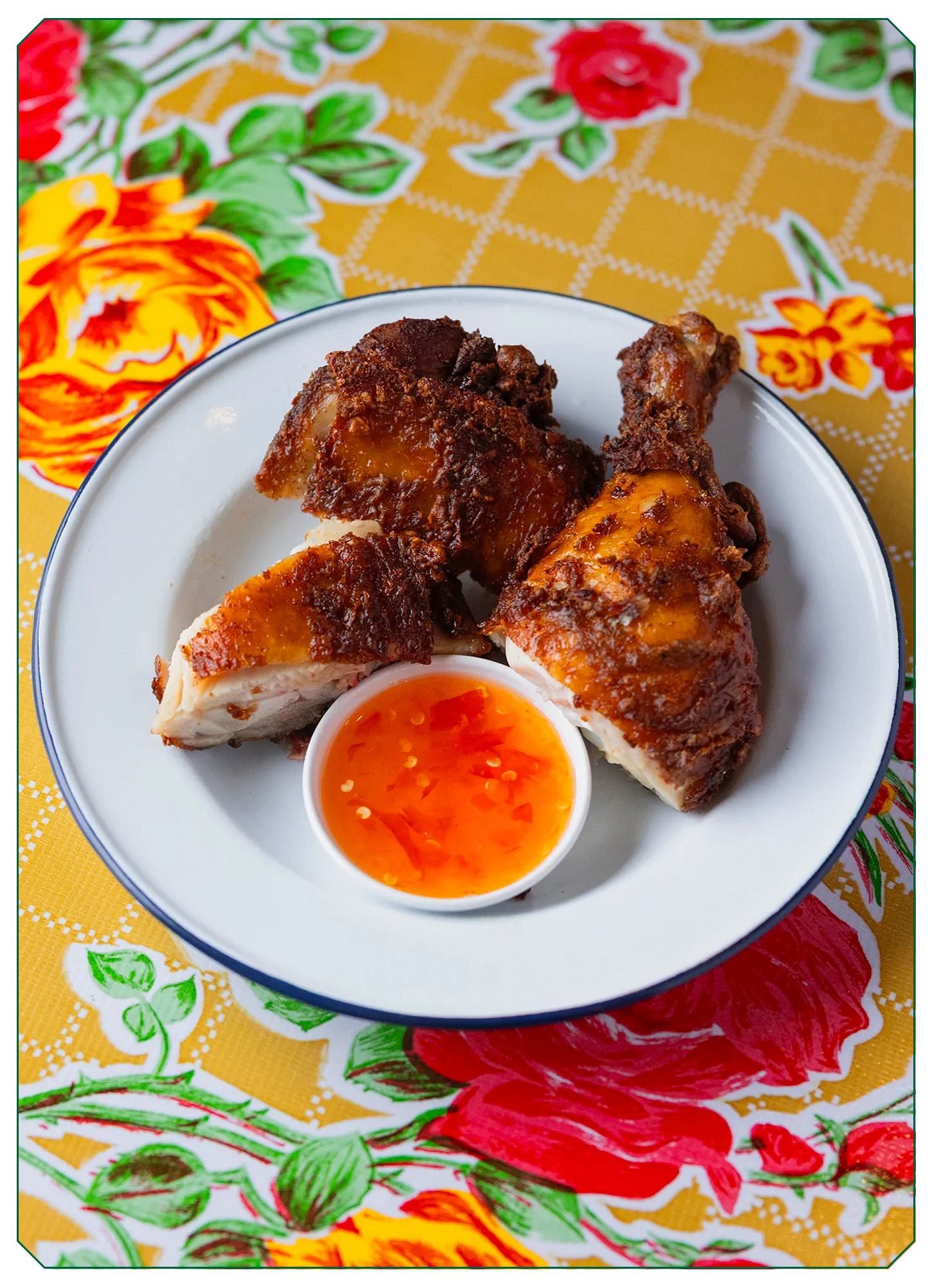 OK Chicken and Khao Soi is a Northern Thai restaurant from Earl Ninsom, Eric Nelson, and Sam Smith, rooted in the flavors of Chiang Mai. The menu centers on rich, curry-coated khao soi with beef, chicken, or tofu, alongside fried and charcoal-grilled chicken, sai oua sausage, papaya salads, and nam phrik relishes built for sharing. Inspired by time spent eating their way through northern Thailand, the dishes lean bold, herbal, and deeply savory, with plenty of chiles and sticky rice to tie it all together. The bar keeps things easygoing with fruit smoothies, teas, and slushies.